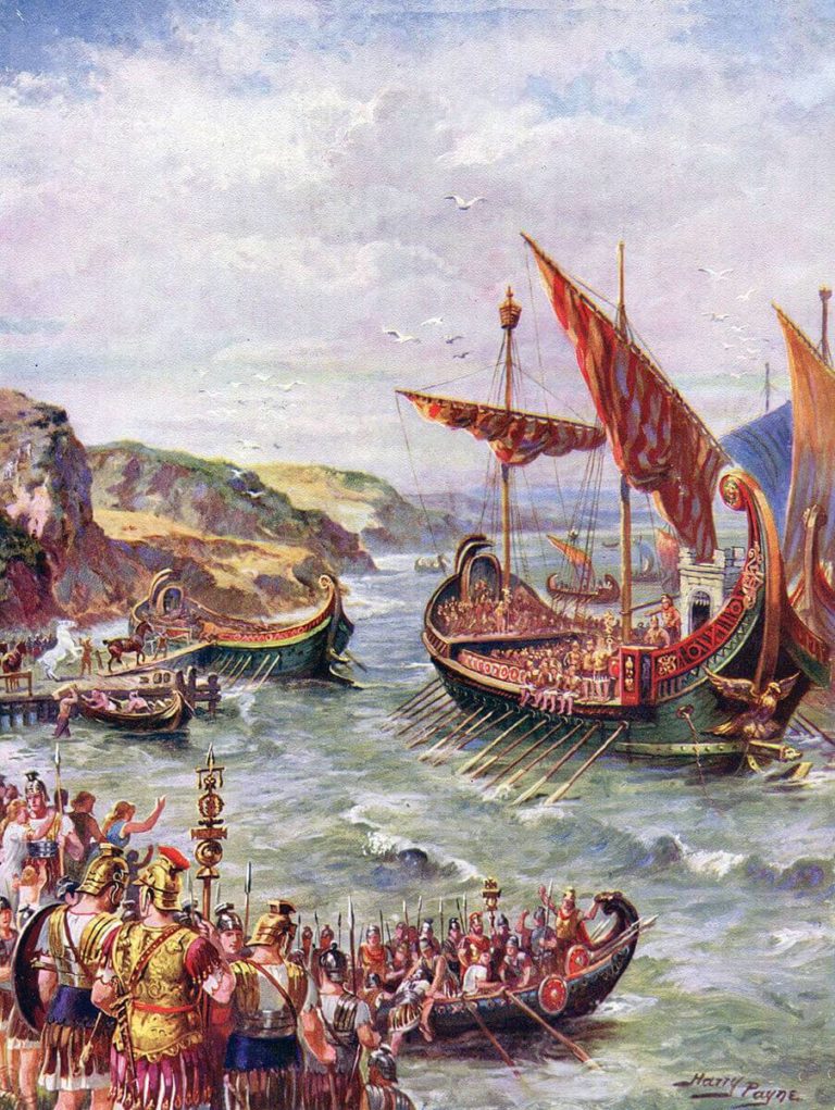 We can say little with real certainty. Almost everything is in some form of doubt – the port of departure might have been Boulogne, or perhaps from the Seine estuary.1 The landing site might be in Kent, or Sussex, or even farther west in the Solent, or perhaps there was more than one.2 Birgitta Hoffmann tells us: “…the only facts that can be trusted are that there was a successful invasion of Britain, that Aulus Plautius was in charge, that Vespasian had a lesser command and that Claudius came for a short period.”3 If we extrapolate further we find a consensus formulating amongst scholars that the invasion likely occurred in 43 CE, and that Plautius probably brought with him the IX legion, Hispana, from Pannonia, where he was likely governor prior to the invasion, and he brought the II legion, Augusta, from Upper Germany, commanded by Vespasian.4 It’s possible that the XIV legion, Gemina, and the XX legion Valeria Victrix, were also present at the invasion, since we know they were present during Boudica’s rebellion seventeen years later in 60-61 CE.5 It’s possible, however, that other legions had been present instead and were swapped out for these legions later.