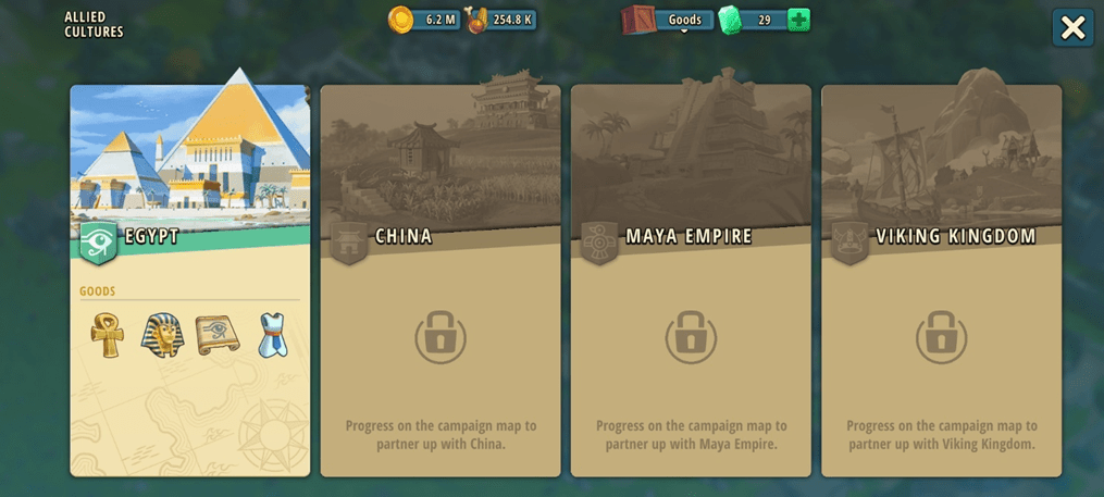 This is part of Rise of Cultures’ particularly colonialist approach to relations with other nations, in that certain NPC and thus ‘othered’ cultures relate to the ‘player’s culture’ purely as locations to be effectively exploited; at certain points in the campaign, leaders from these cultures are met via expansionist conquest, and these leaders then hand over control of their lands in order to enable the player to create and use “goods” from those cultures, which are not producible in the player’s main established city. Indeed, the frequency of words “Empire” in the titles and descriptions of these games (as in the city-builders listed above), gives a fairly obvious indication that this is a shared approach to history and statehood, as both are envisaged in many of these games.
