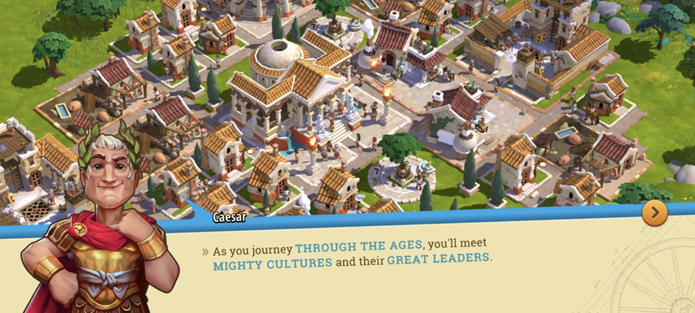 Where we move away from these versions of well-known games, it is also clear that many historically-themed mobile games share features or designs from existing console and PC games of popular genres. City-builders, for example, are frequent across mobile stores, such as Antiquitas (2018), Sim Empire: Origins (2019), Empire City: Build and Conquer (2022), or Forge of Empires: Build a City (2012). The mechanics and gameplay elements are often very similar to games in this genre found on the PC since the 1990s. Sim Empire: Origins, for example, plays much like a Sierra city-builder such as Zeus: Master of Olympus or Caesar, with cities constructed around municipal and cultural sites whose benefits need to extend over houses so that they can be upgraded, to enable additional residents in the city. The game also features detailed historical tooltips for buildings and for technological developments. More simplified games in the same genre are also popular, such as Rise of Cultures, which is a ‘civ-builder’ with a more limited set of options for resources and building types, and thus a rather more straightforward approach to gameplay.2